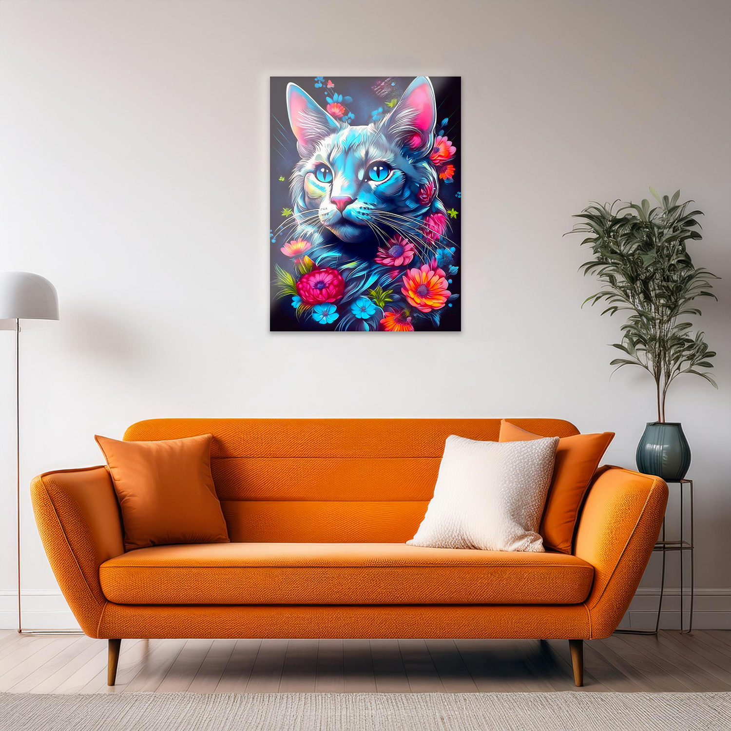 Découvrez le charme du tableau Pop Art Chat Aux Fleurs